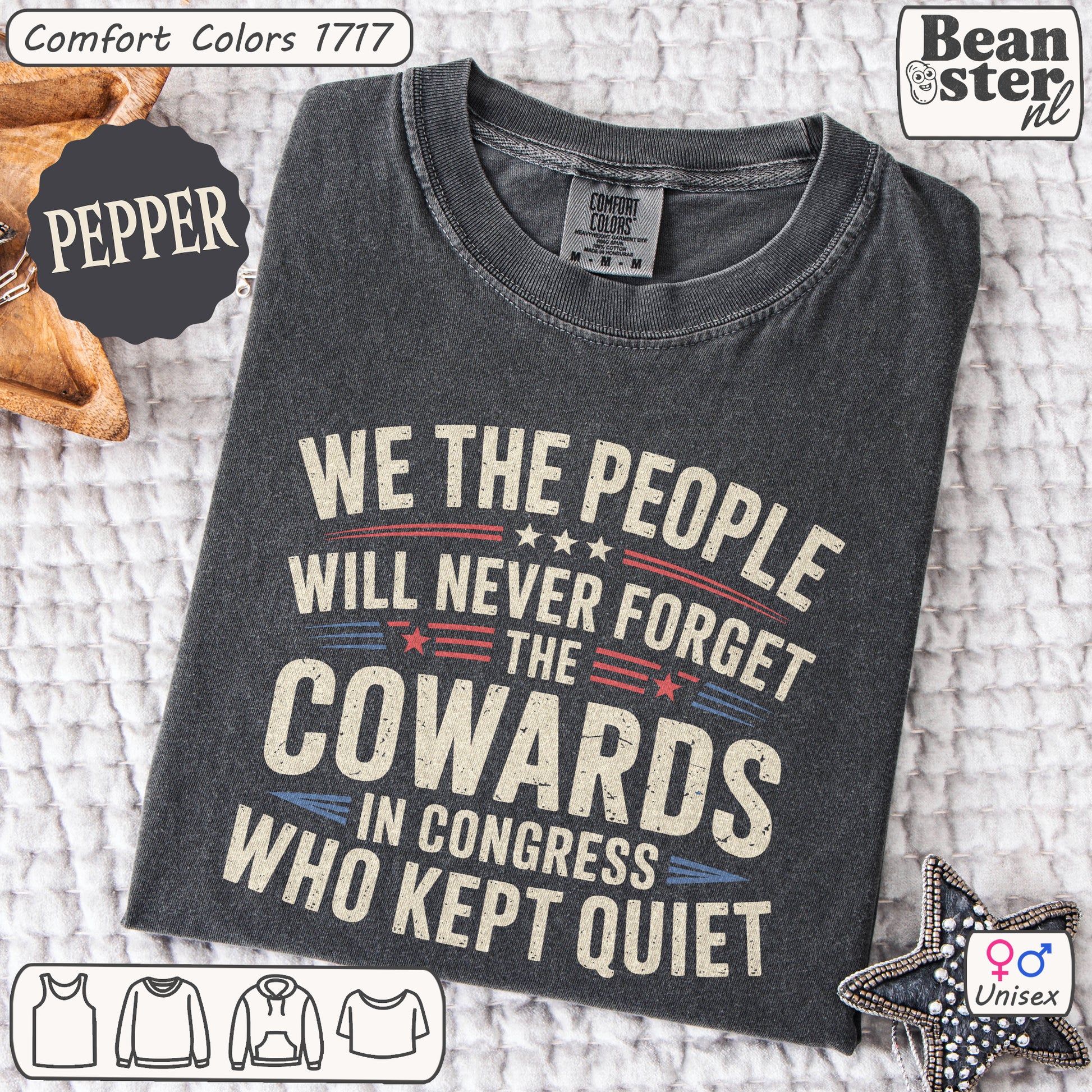 Stand tall, speak loud ✊ and wear your values with pride in this original design t-shirt: “We The People Will Never Forget The Cowards.” More than just fabric, it’s a statement – a bold call for liberty and justice that refuses to be silenced.