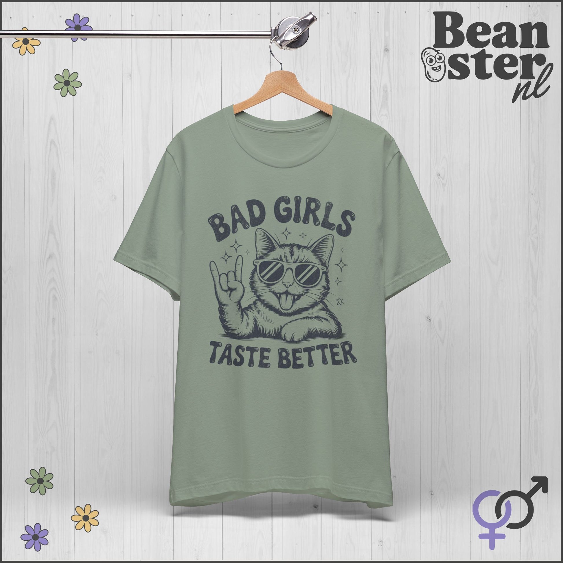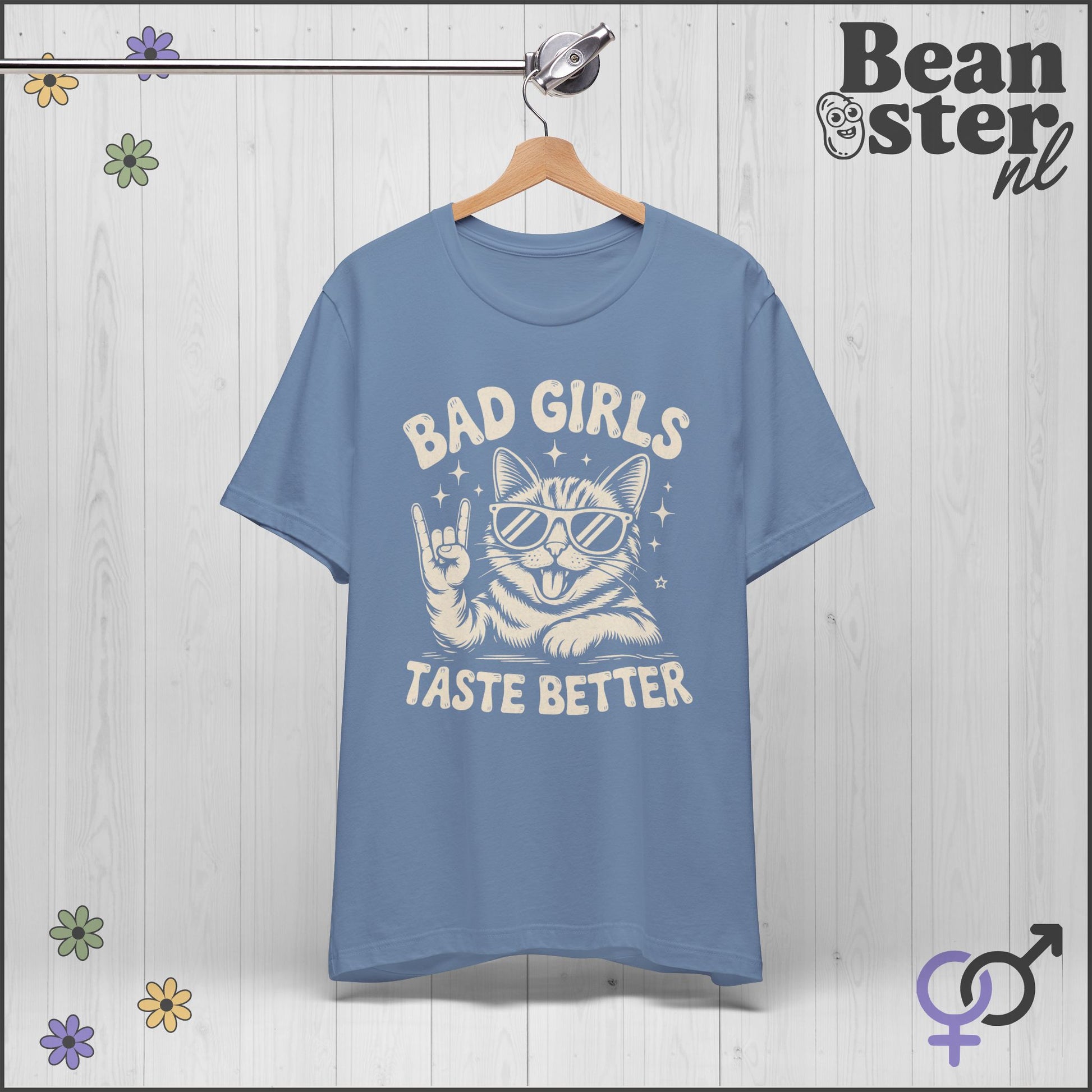 Unleash your inner rebel with our original Bad Girls Taste Better t-shirt 😼✨! This cheeky adult humor tshirt is perfect for anyone who loves a little edge in their wardrobe. Featuring a cool rock cat illustration, it’s a playful nod to vintage style vibes while keeping it modern and fun.