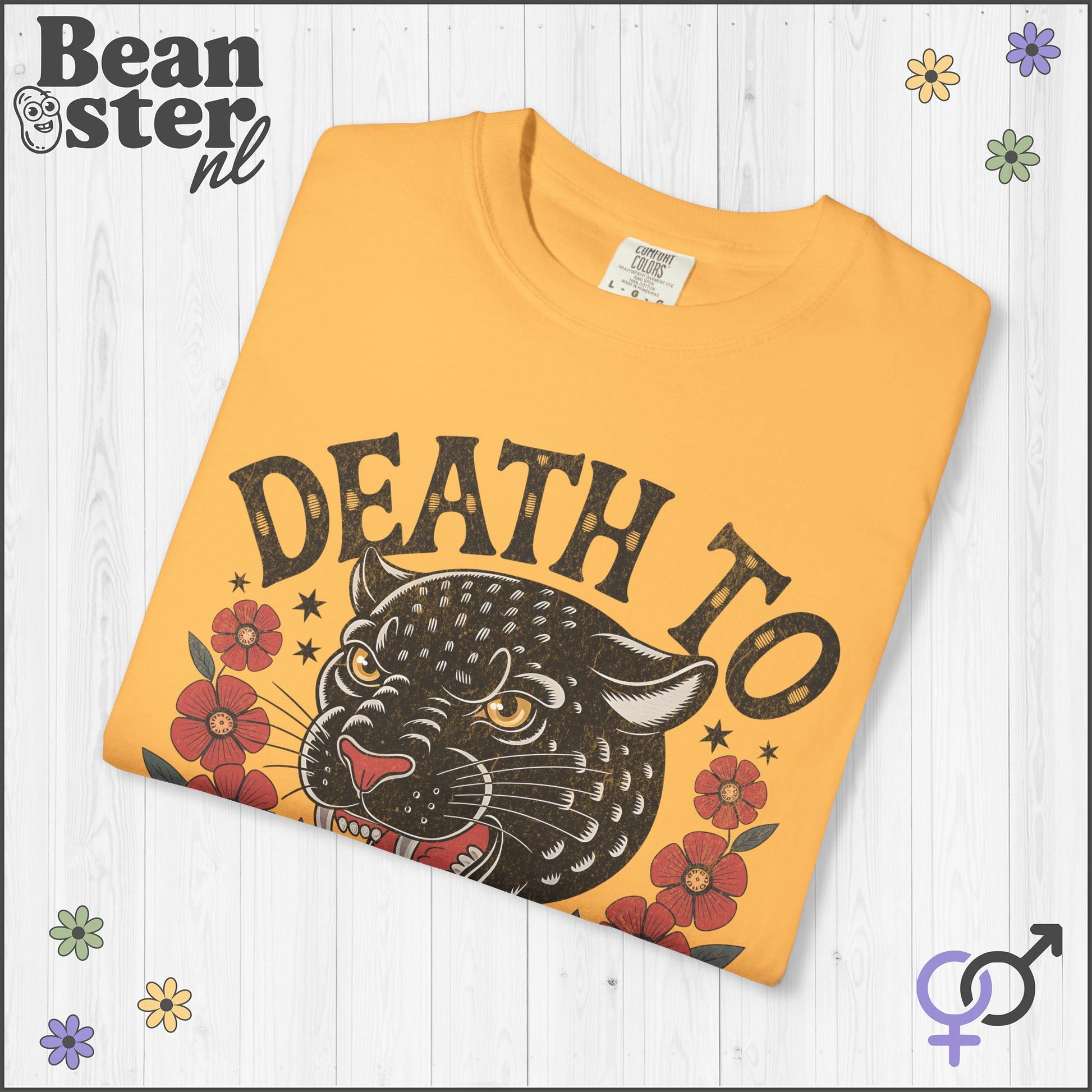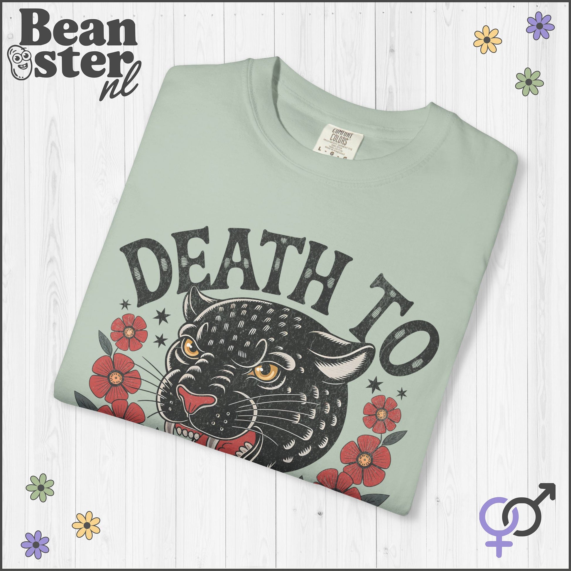 Stand out and make a statement with this original “Death To Tyrants” t-shirt 🌸🖤! Featuring a retro flower Black Panther illustration, this shirt blends vintage style anti-fascist vibes with modern comfort. Perfect for anyone who wants to wear their activist protest spirit on their sleeve, literally. Whether you’re into subtle political statements or want a leftish present for a friend, this tee shouts liberty and justice without saying a word.