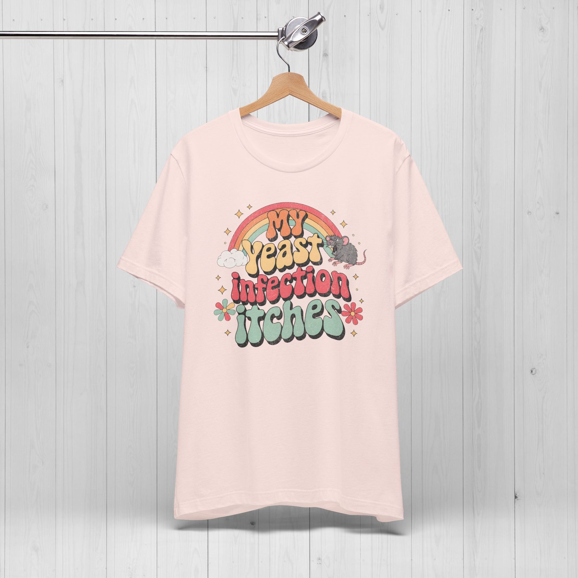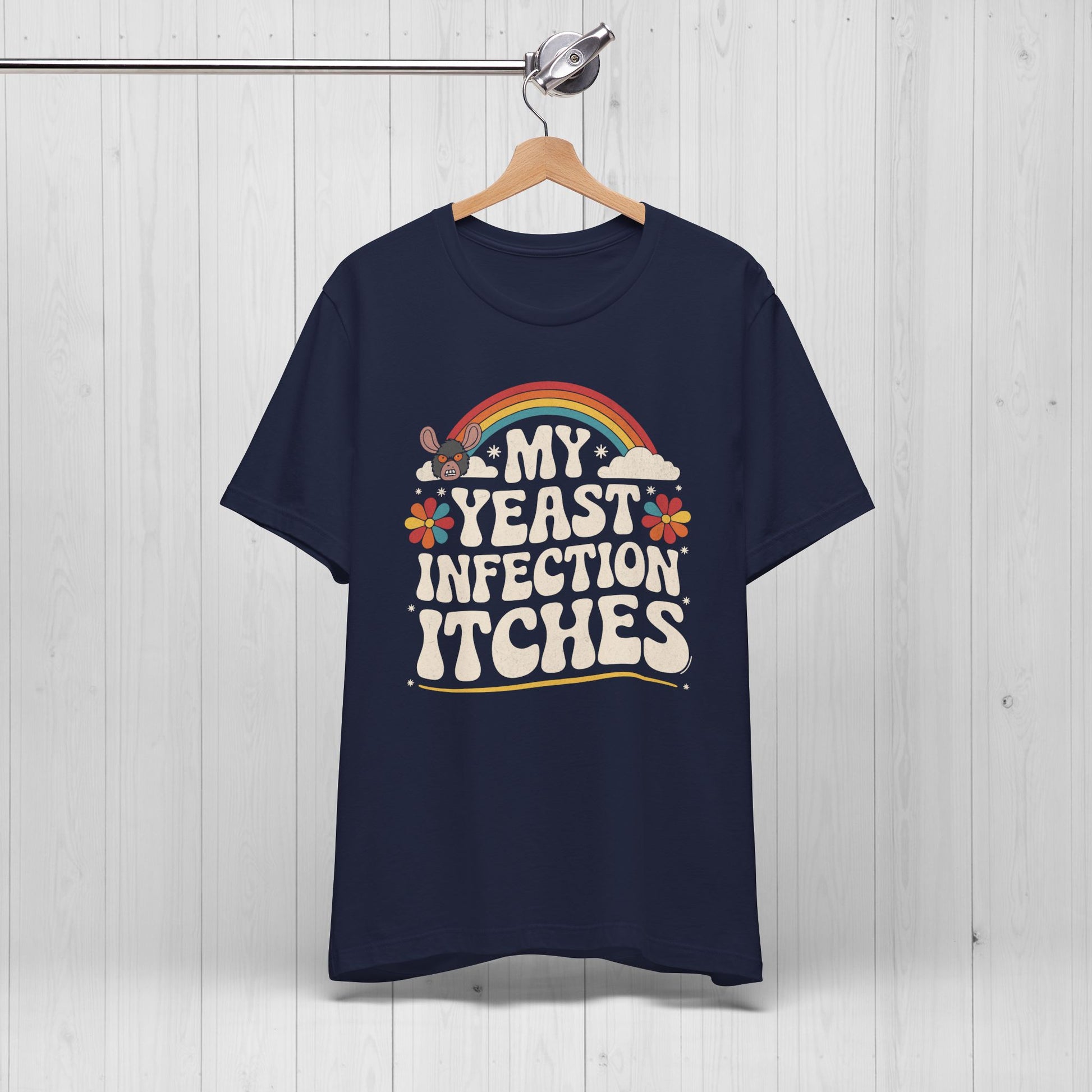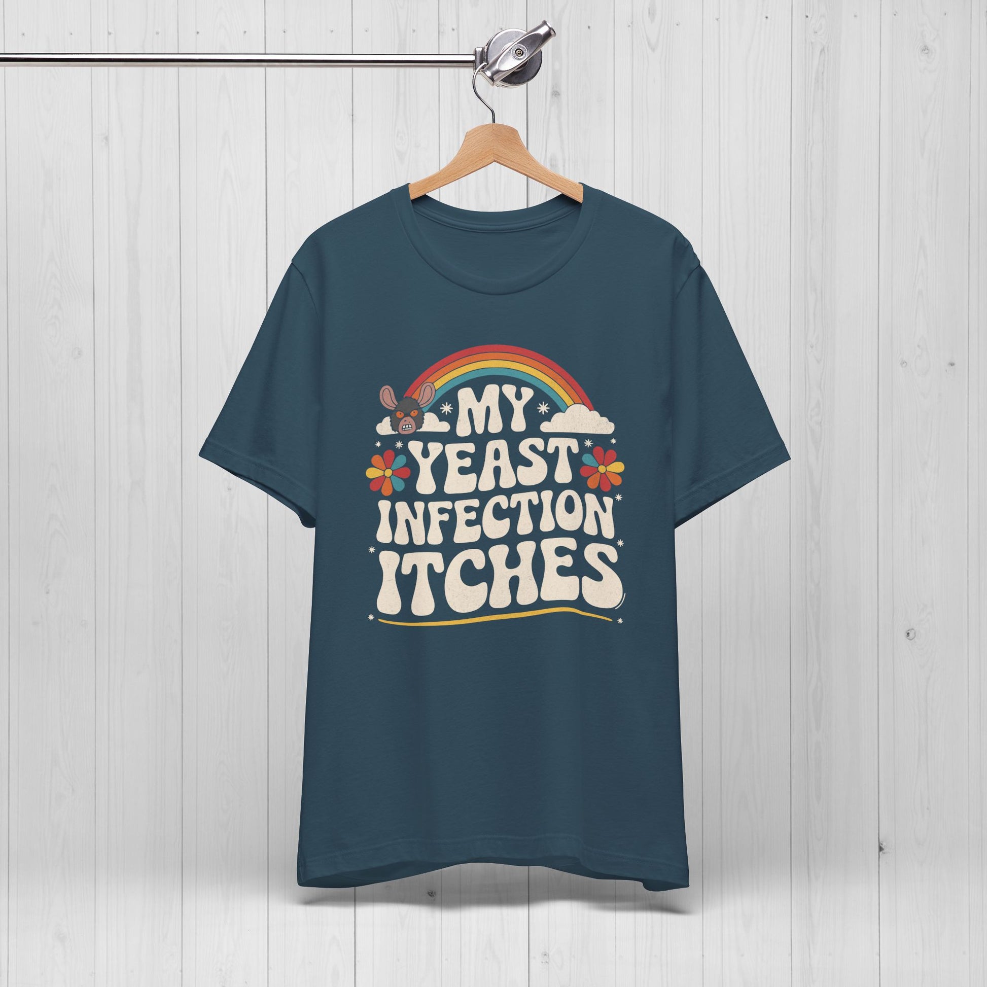 Get ready to turn heads and spark laughs with this original, quirky tee featuring the cheeky statement, My Yeast Infection Itches, paired with a nostalgic retro rainbow illustration 🌈. Perfect for those who love a bit of weird humor and aren’t afraid to wear their sarcasm on their sleeve—literally!