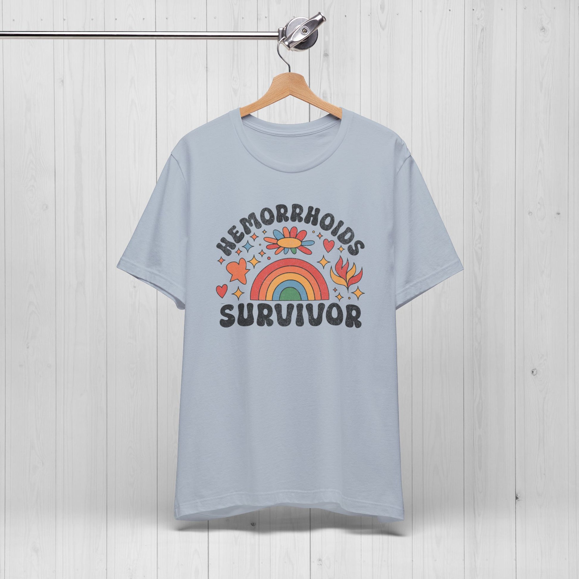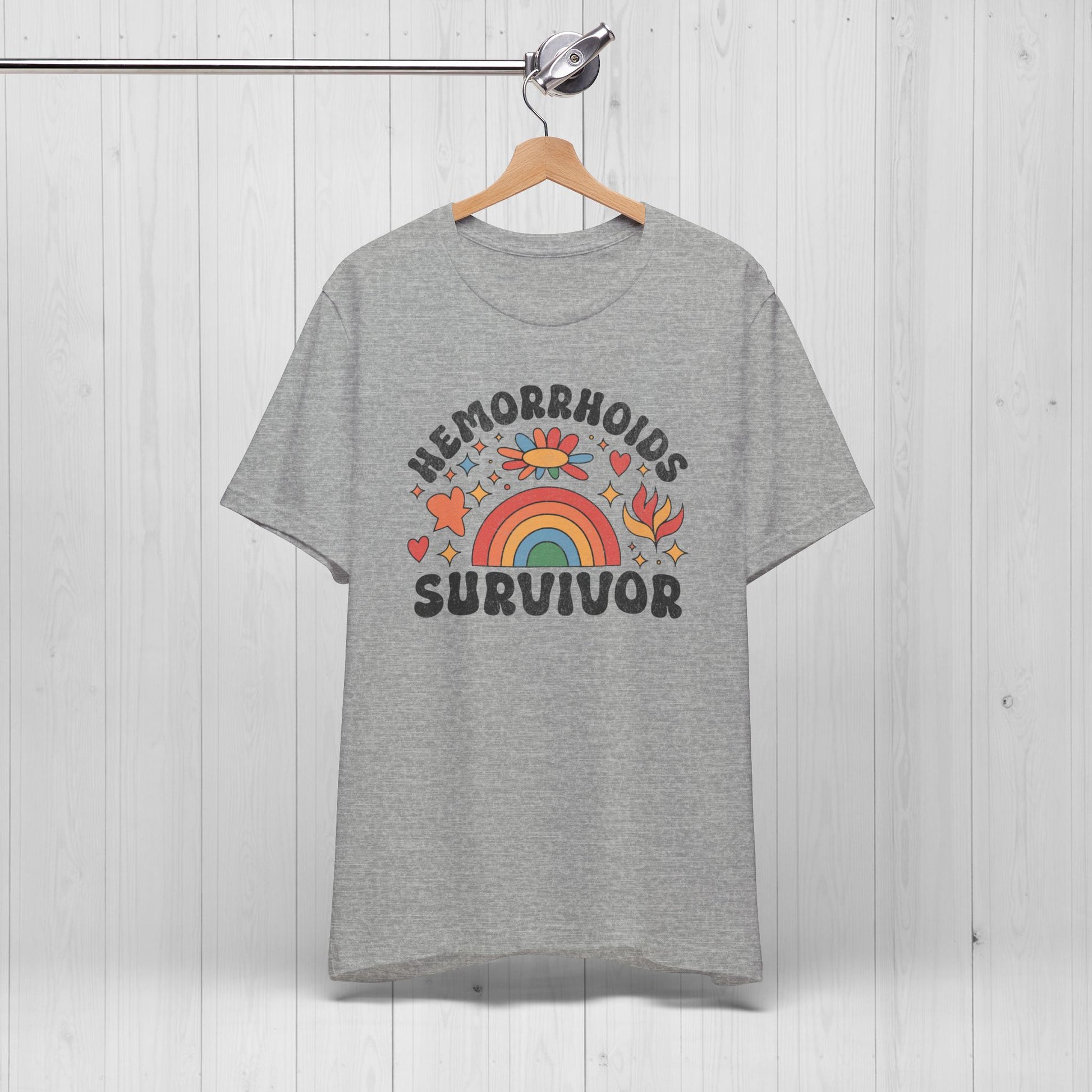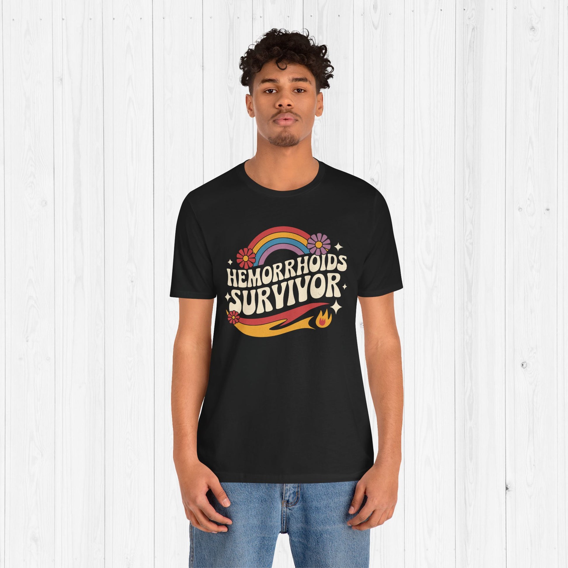 Survived the burn? 😮💨 Wear it proud. Our Hemorrhoids Survivor t-shirt lets the world know you’ve been through some 💩 and came out stronger. Featuring a groovy rainbow design straight from the weirdest corners of the internet, this shirt is part inspirational badge, part inappropriate trophy.