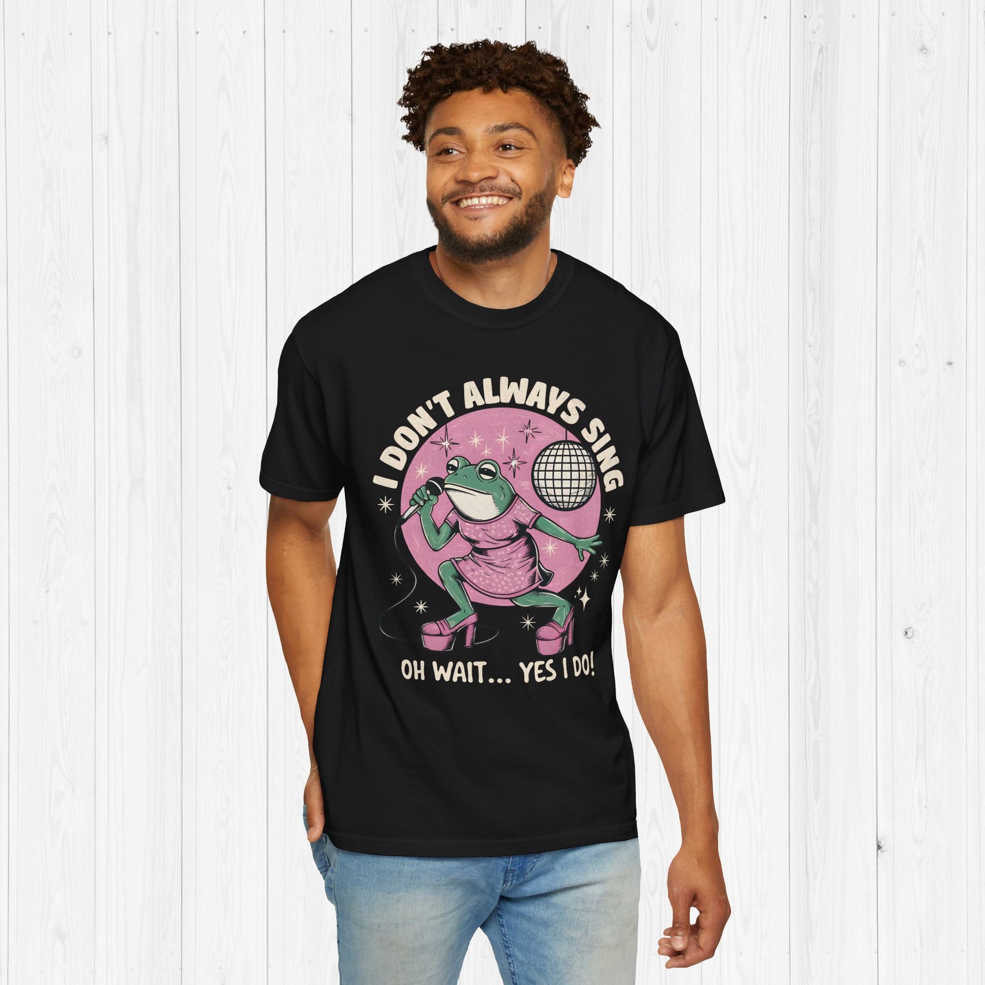 Get ready to croak up some laughs with our original I Don’t Always Sing t-shirt featuring a funky singing disco frog 🐸🎤! This vintage-washed tee is perfect for karaoke nights, music teachers, choir members, or anyone who loves a playful nod to music therapy and backing vocalist vibes. Whether you're hitting the stage or just vibing at home, this fun, oversized t-shirt brings retro charm with a splash of humor.