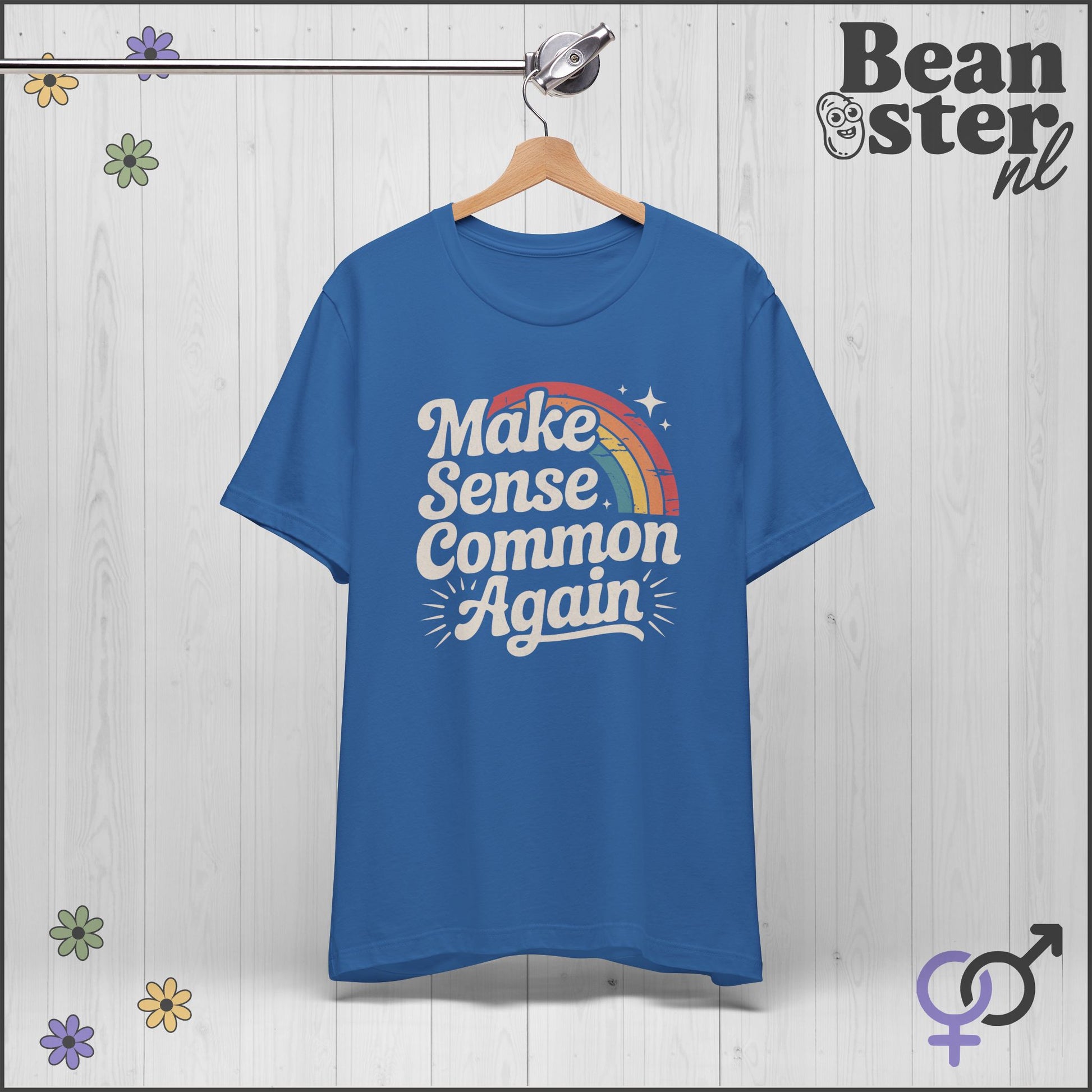 Tired of nonsense? Say it loud (and stylishly) with this retro rainbow โMake Sense Common Againโ T-shirt ๐ โ an original design that blends vintage vibes with a smart, subtle political statement. Perfect for anyone who believes in logic, kindness, and basic decency.