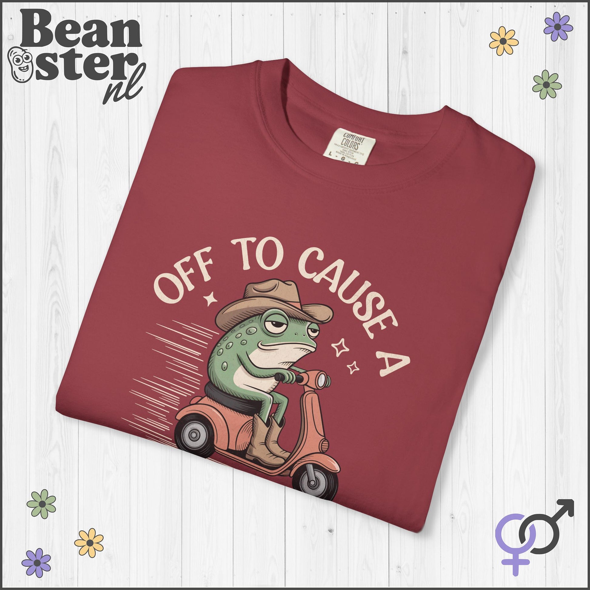 Ready to cause a little chaos? 🐸 Our Off To Cause Kerfuffle Frog Meme T-shirt is made for those who embrace their inner mischief-maker. This original design features a delightfully unhinged frog on a scooter — perfect for anyone with Gen Z humor, weirdcore vibes, or a soft spot for funny meme shirts that don’t take life too seriously.