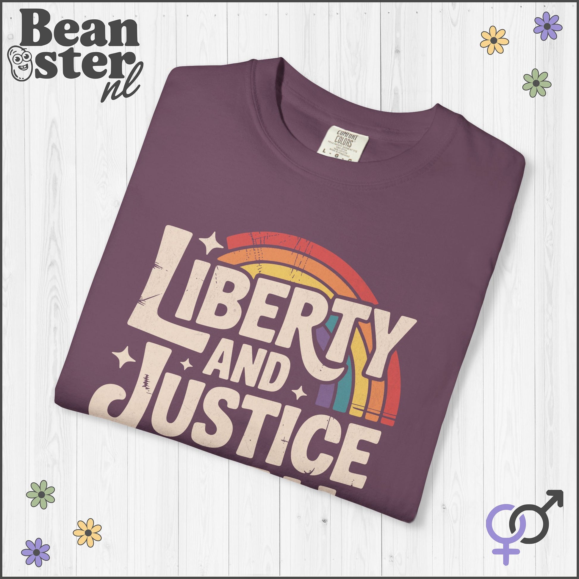 ✨ Wear your values proudly with this Liberty And Justice For All shirt, featuring a bold retro rainbow design. It’s not just fashion—it’s a political statement stitched into cotton comfort. Perfect for rallies, protests, or just reminding the world about basic decency while rocking an oversized t shirt vibe.