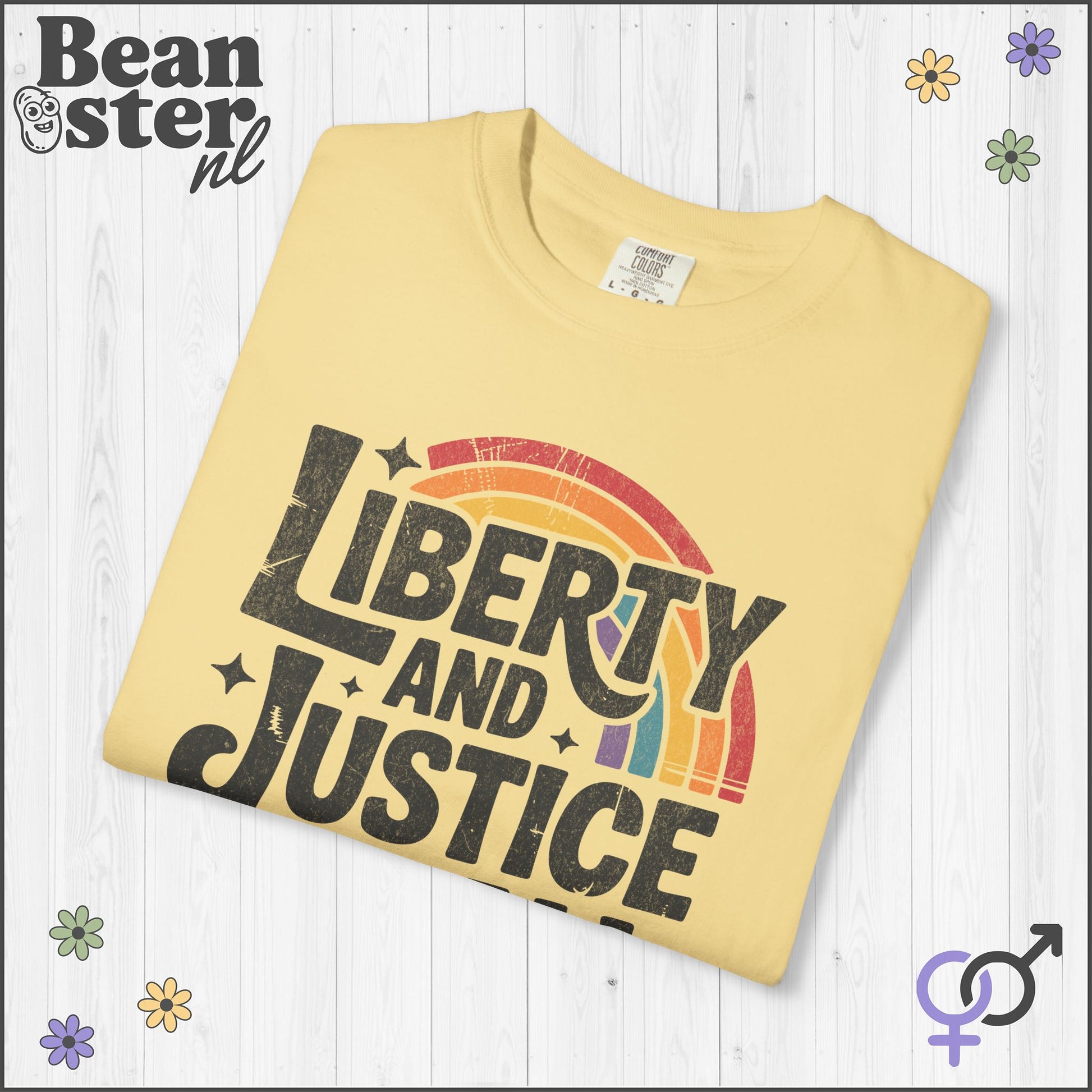 Liberty And Justice For All Retro Rainbow Activist Tee