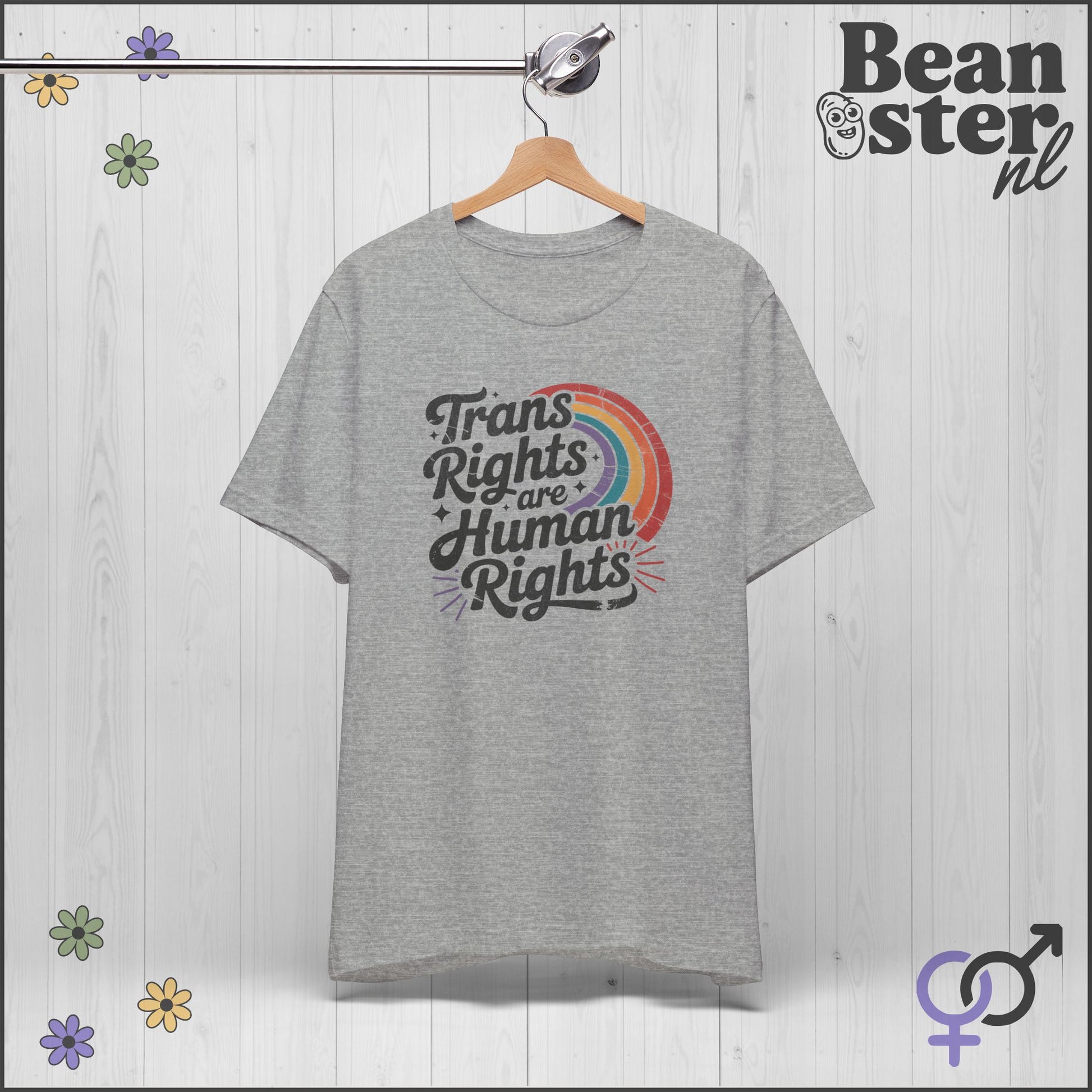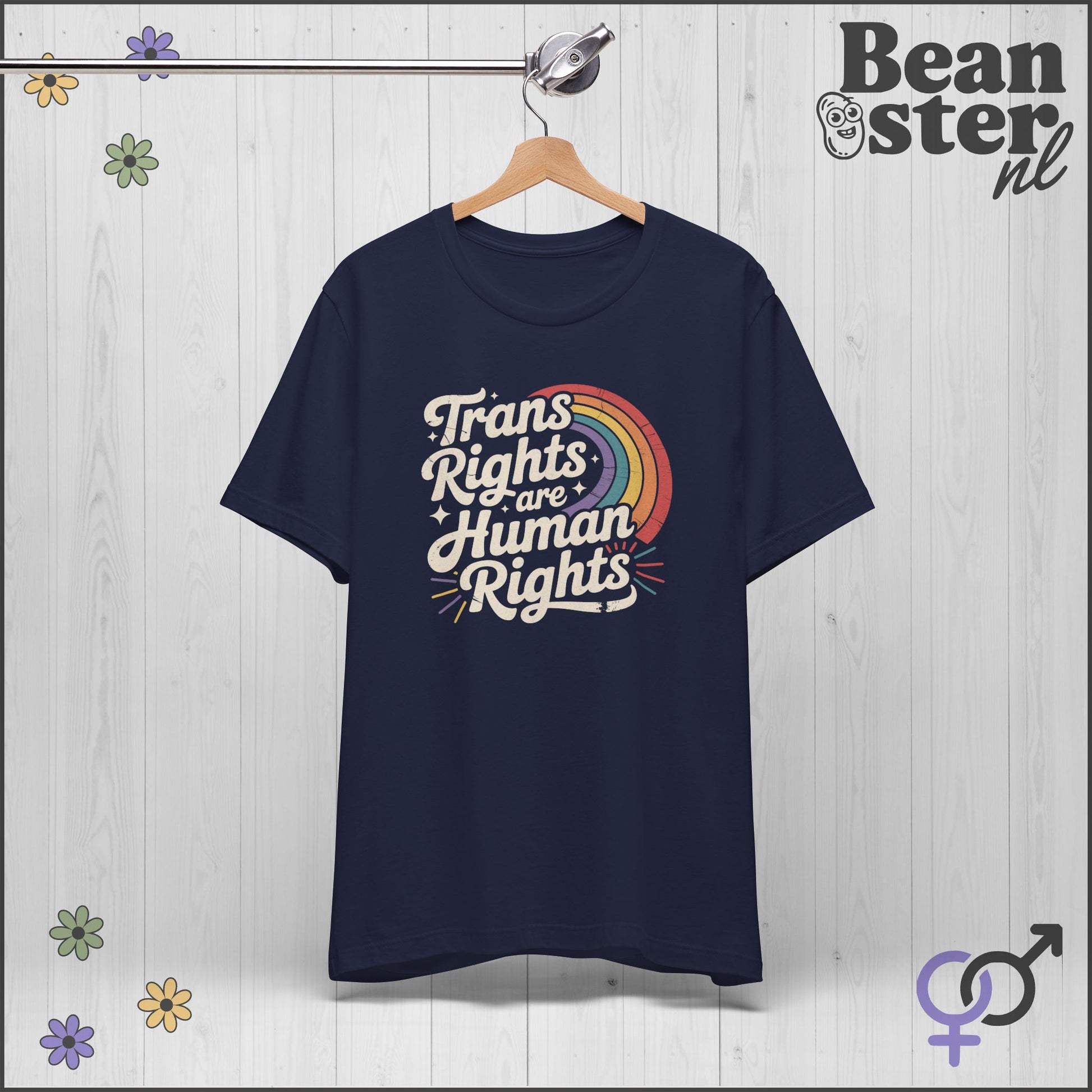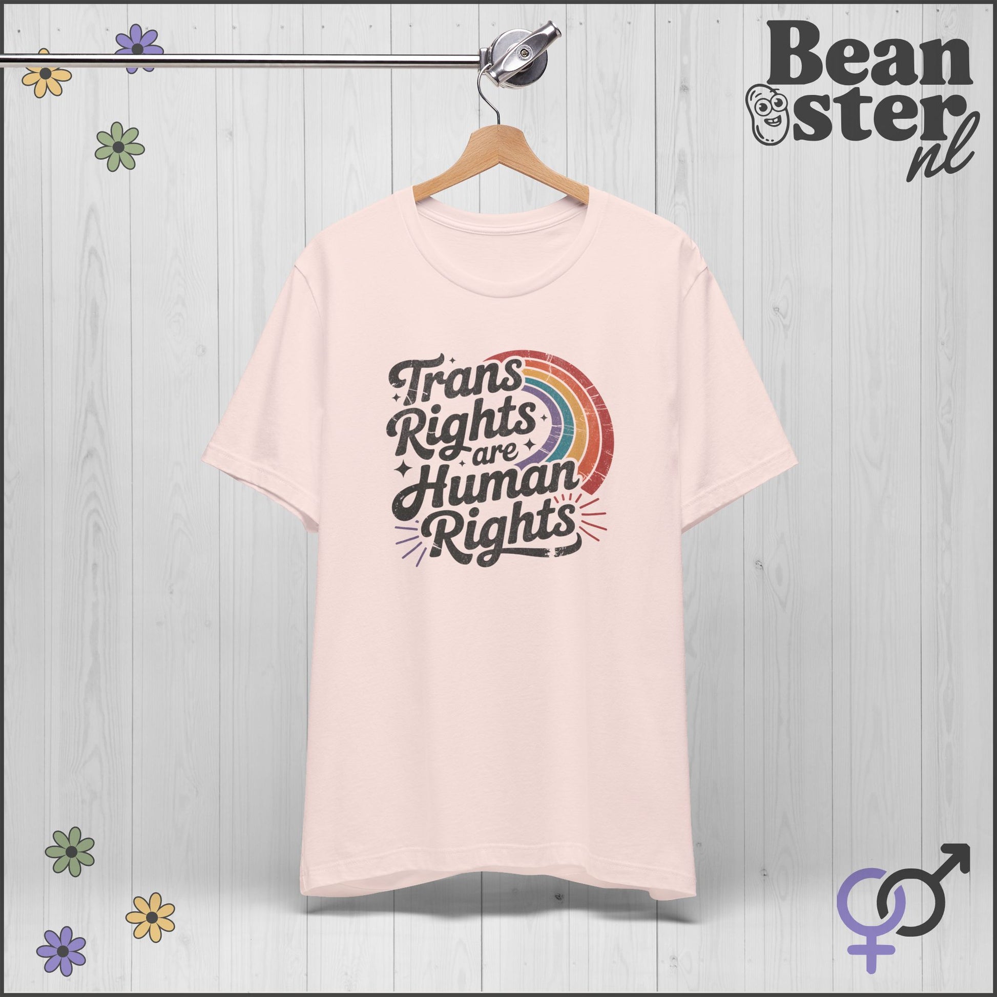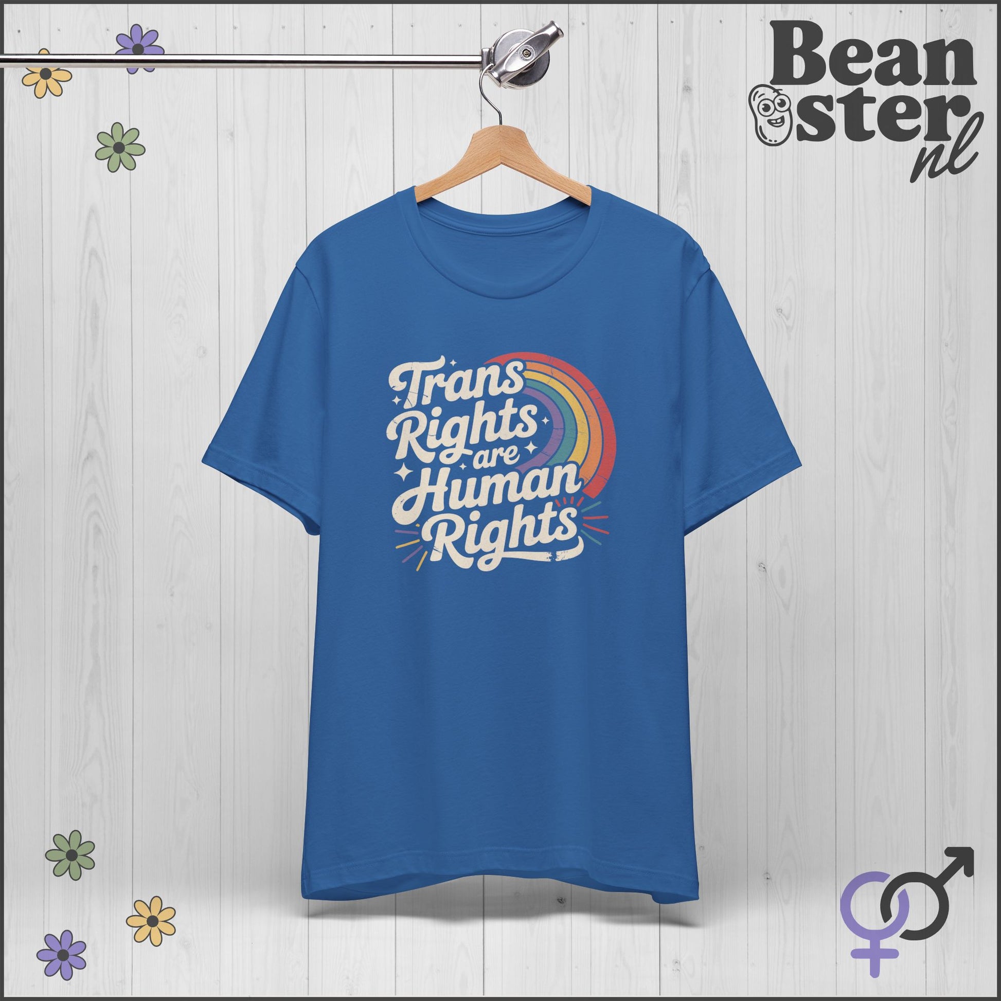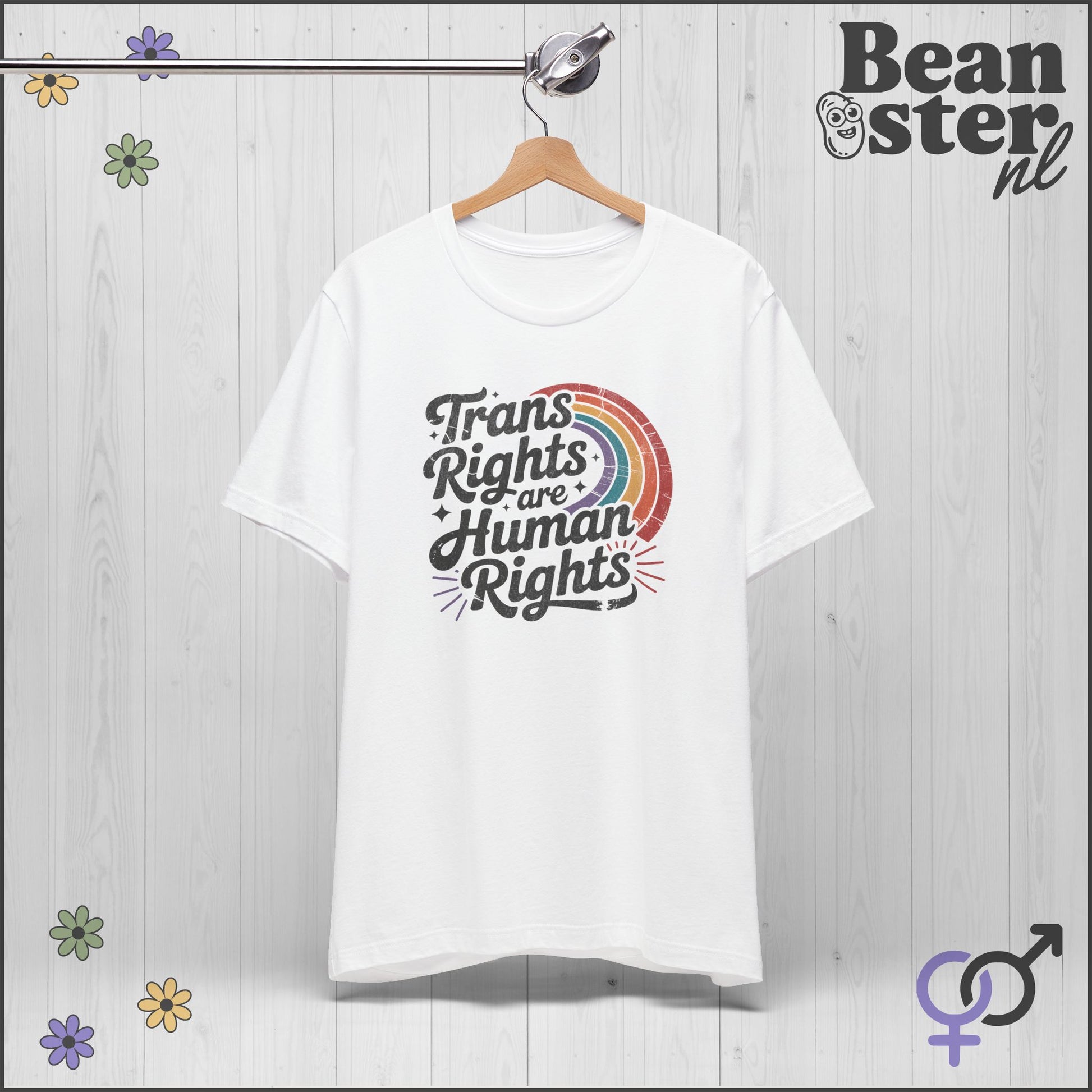 Make a bold, colorful statement with our Trans Rights = Human Rights T-shirt ๐. This original design rocks a retro rainbow graphic that gives serious y2k nostalgic vibes while shouting out what truly matters โ equality, empathy, and love for all.